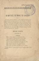 Βιβλίο στο οποίο περιέχεται το θεατρικό δράμα “Οι Μάρτυρες της Μονής του Αρκαδίου” και συλλογή ποιημάτων με παρόμοιο περιεχόμενο.